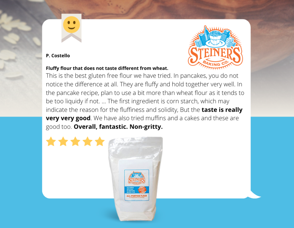 Hi Jennifer - thank you so much for sending out the replacement flour so quickly! That was so nice of you and thank you for your note. I immediately put the flour to work in my new Nordic Ware pan for Chanukah - I made GF banana blueberry cake and it came out fantastic.
